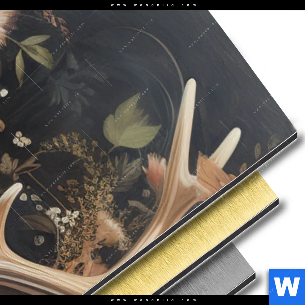 Aluminiumbild gebürstet | Reh Blumen | Schmal