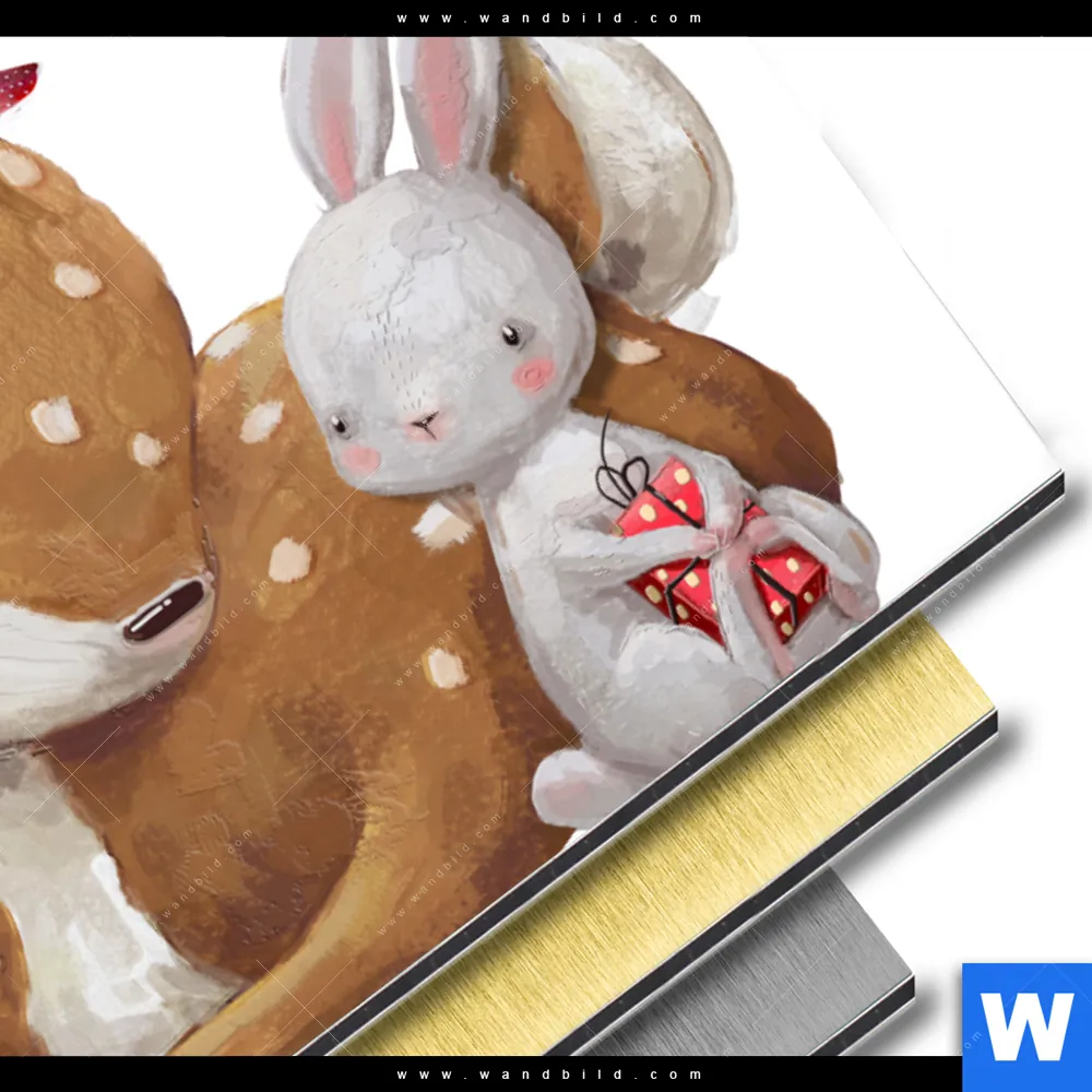 Aluminiumbild gebürstet | Reh & Häschen | Querformat