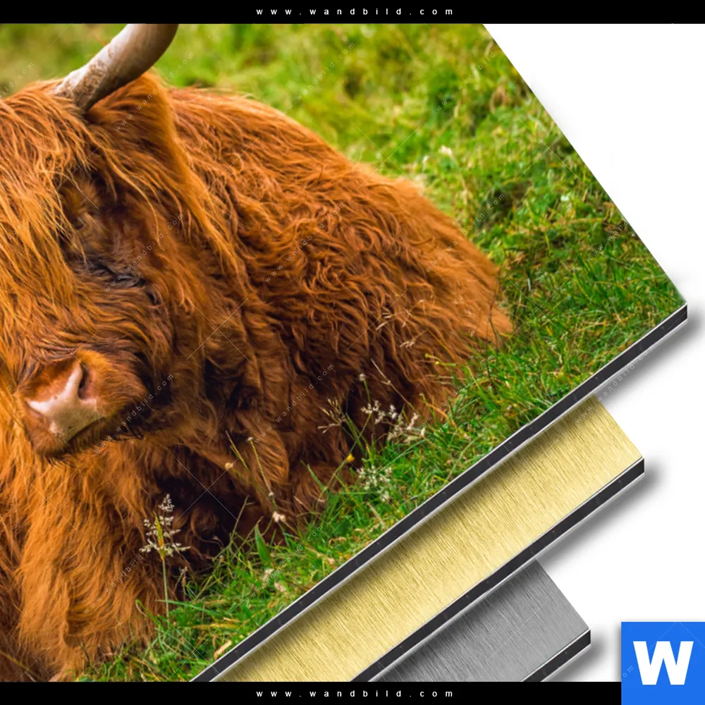 Aluminiumbild gebürstet | Rind in den schottischen Highlands | Querformat