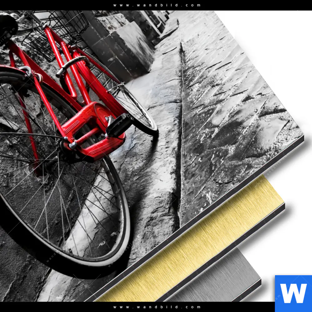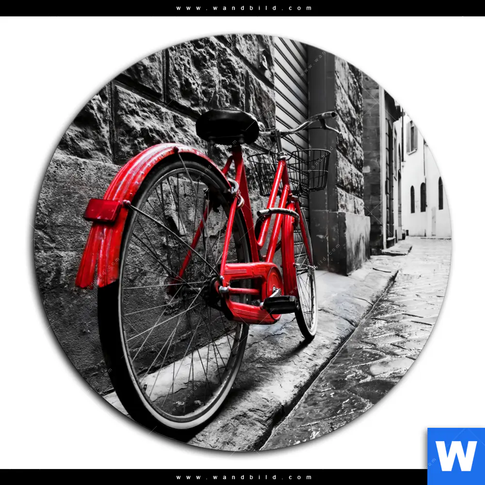 Aluminiumbild gebürstet | Rotes Fahrrad in Gasse | Rund