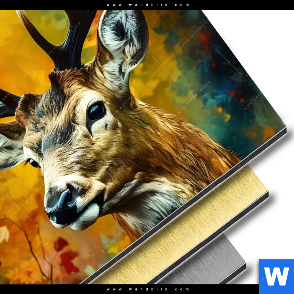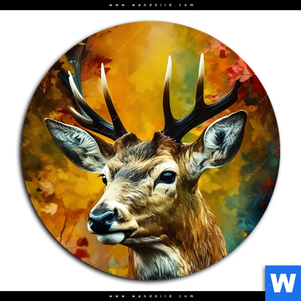 Aluminiumbild gebürstet | Rothirsch im Herbstwald | Rund
