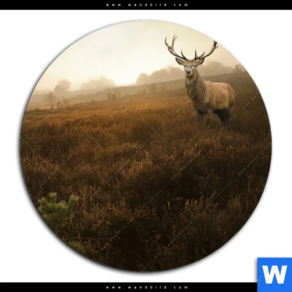 Aluminiumbild gebürstet | Rothirsch im Nebel | Rund