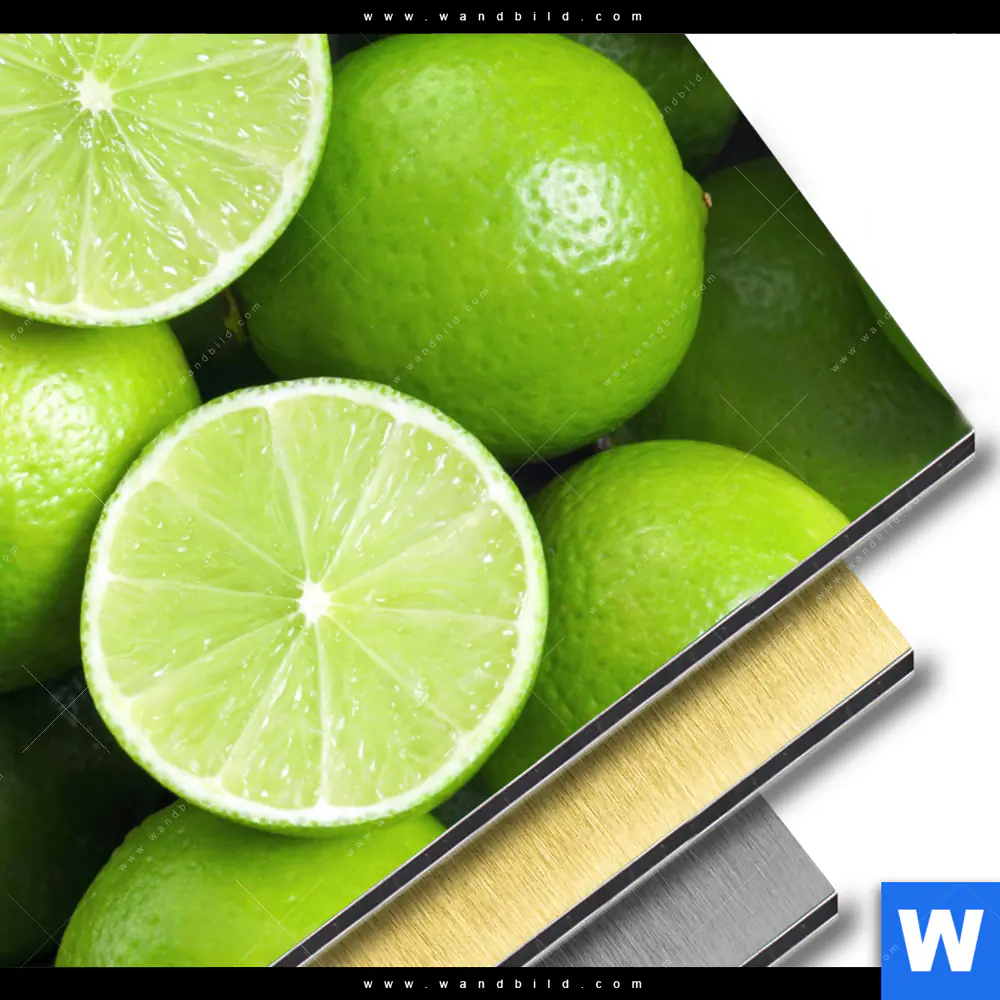 Aluminiumbild gebürstet | Saftige Limetten voller Energie | Quadrat