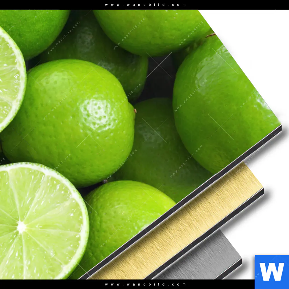 Aluminiumbild gebürstet | Saftige Limetten voller Energie | Querformat