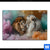 Aluminiumbild gebürstet | Sanfte Löwenmomente in buntem Nebel | Querformat