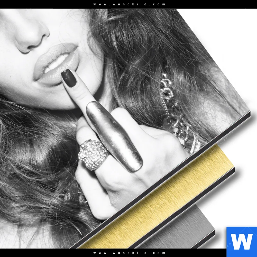 Aluminiumbild gebürstet | Schöner Mittelfinger | Rund