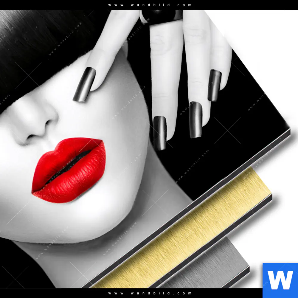 Aluminiumbild gebürstet | Schwarze Eleganz & rote Lippen | Quadrat