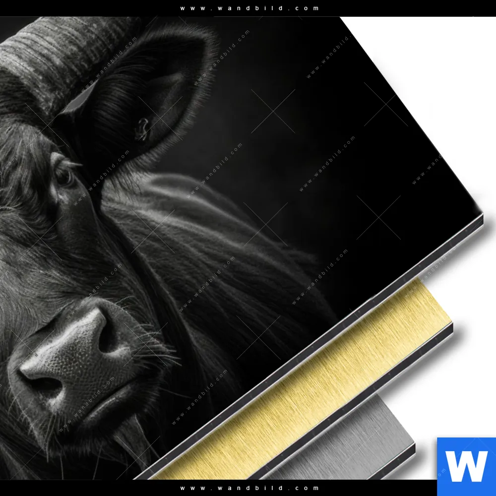 Aluminiumbild gebürstet | Schwarzer Bulle | Querformat
