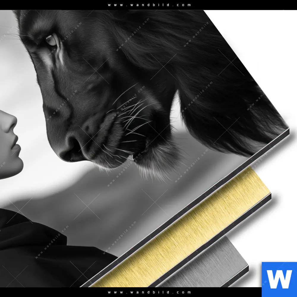Aluminiumbild gebürstet | Seelenblick - Löwe & Frau | Rund