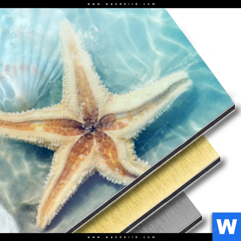 Aluminiumbild gebürstet | Seesterne & Muscheln | Panorama
