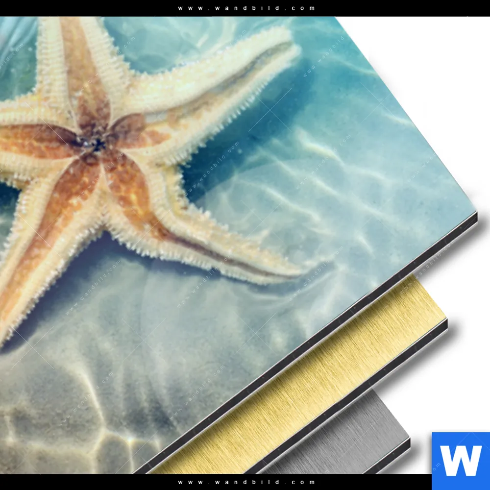 Aluminiumbild gebürstet | Seesterne & Muscheln | Schmal