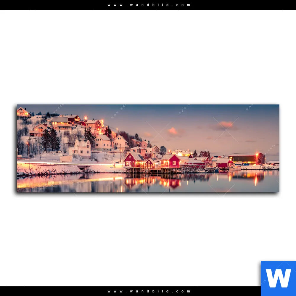 Aluminiumbild gebürstet | Skandinavische Stadt bei Nacht | Panorama
