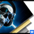 Aluminiumbild gebürstet | Skelett & Kopfhörer | Hochformat