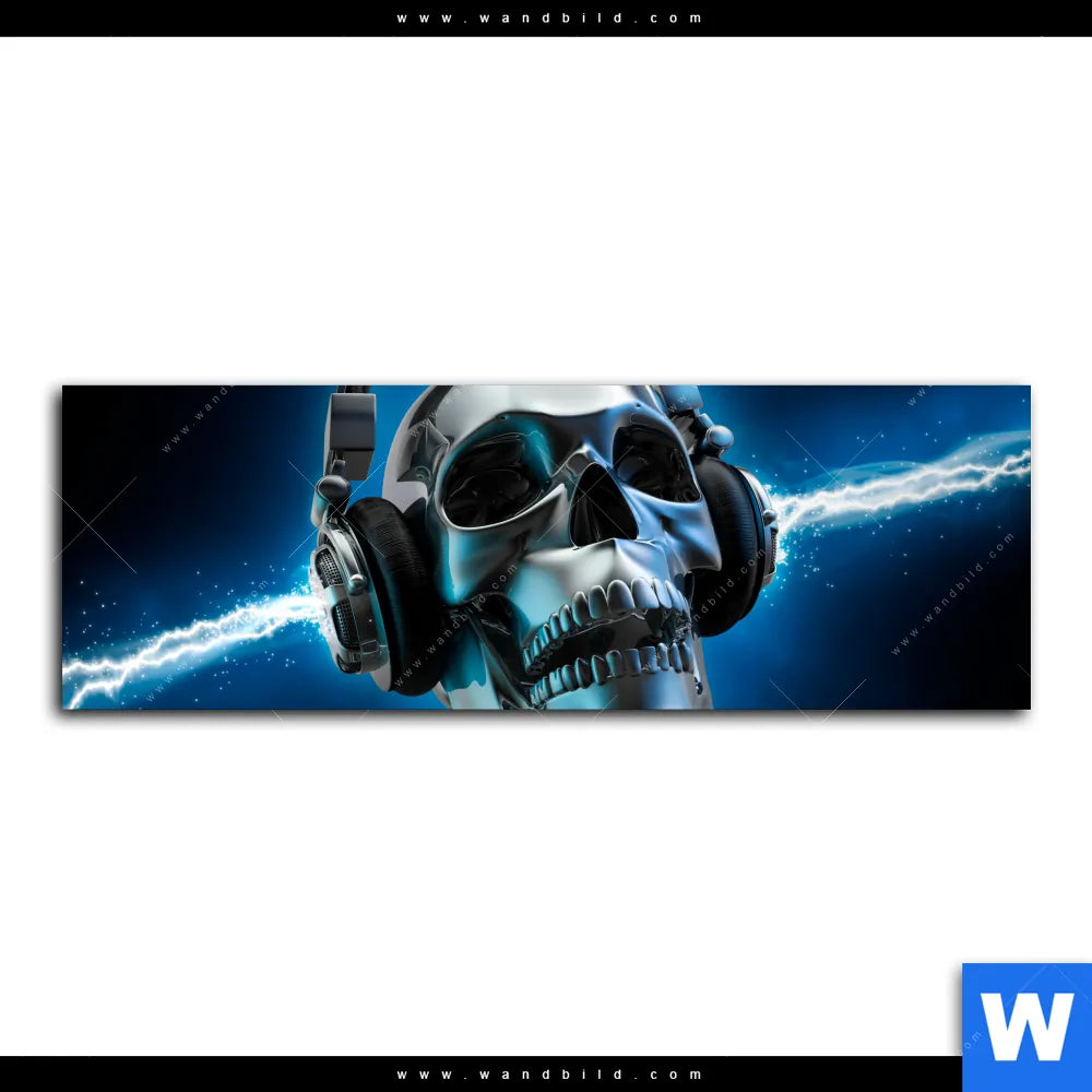 Aluminiumbild gebürstet | Skelett & Kopfhörer | Panorama