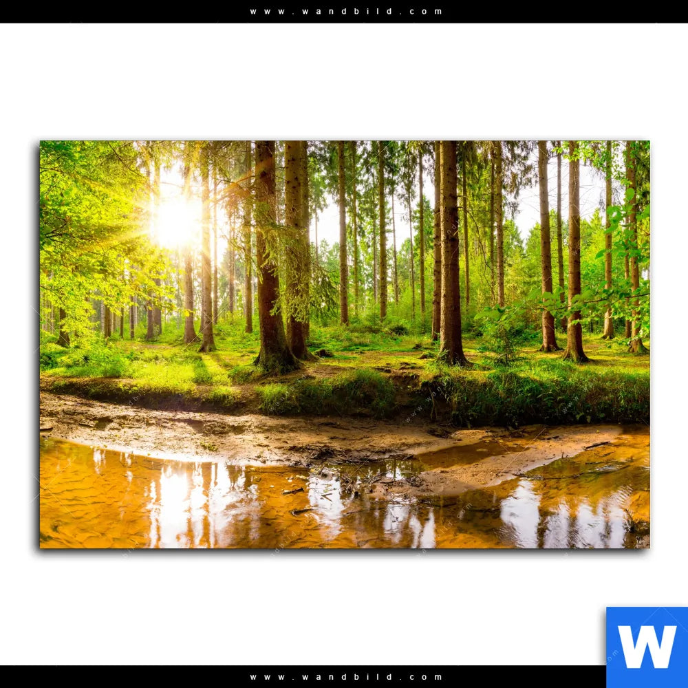 Aluminiumbild gebürstet | Sonne im grünen Wald | Querformat