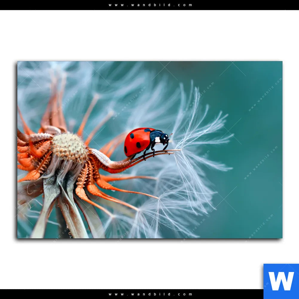 Aluminiumbild gebürstet | Sonnenkäfer auf Pusteblume | Querformat