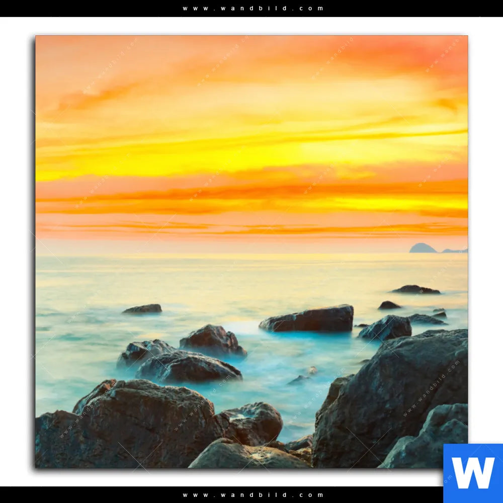 Aluminiumbild gebürstet | Sonnenuntergang über dem Meer | Quadrat