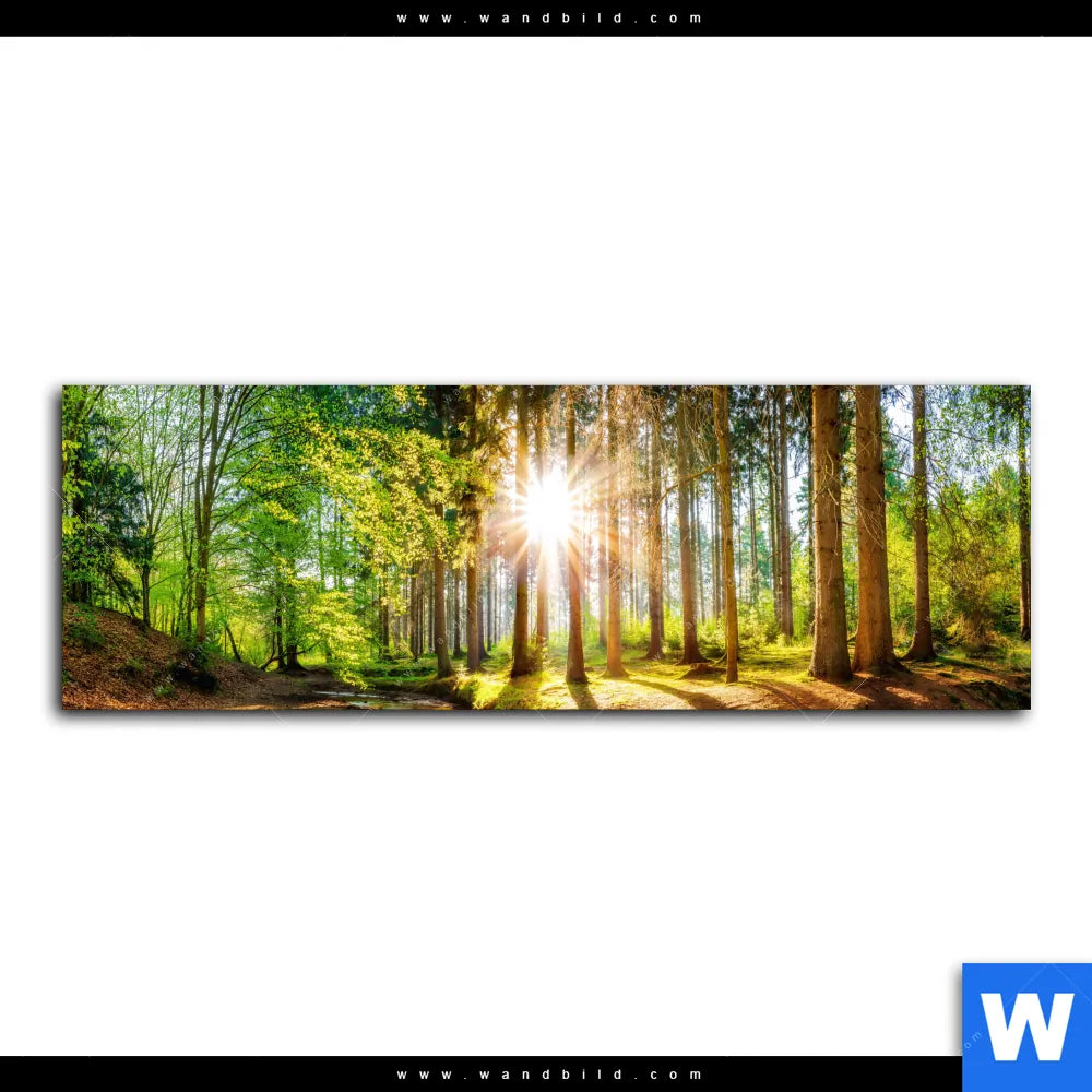 Aluminiumbild gebürstet | Sonniger Wald | Panorama