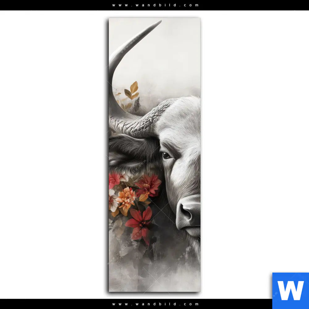 Aluminiumbild gebürstet | Starker Bulle mit Blumen | Schmal