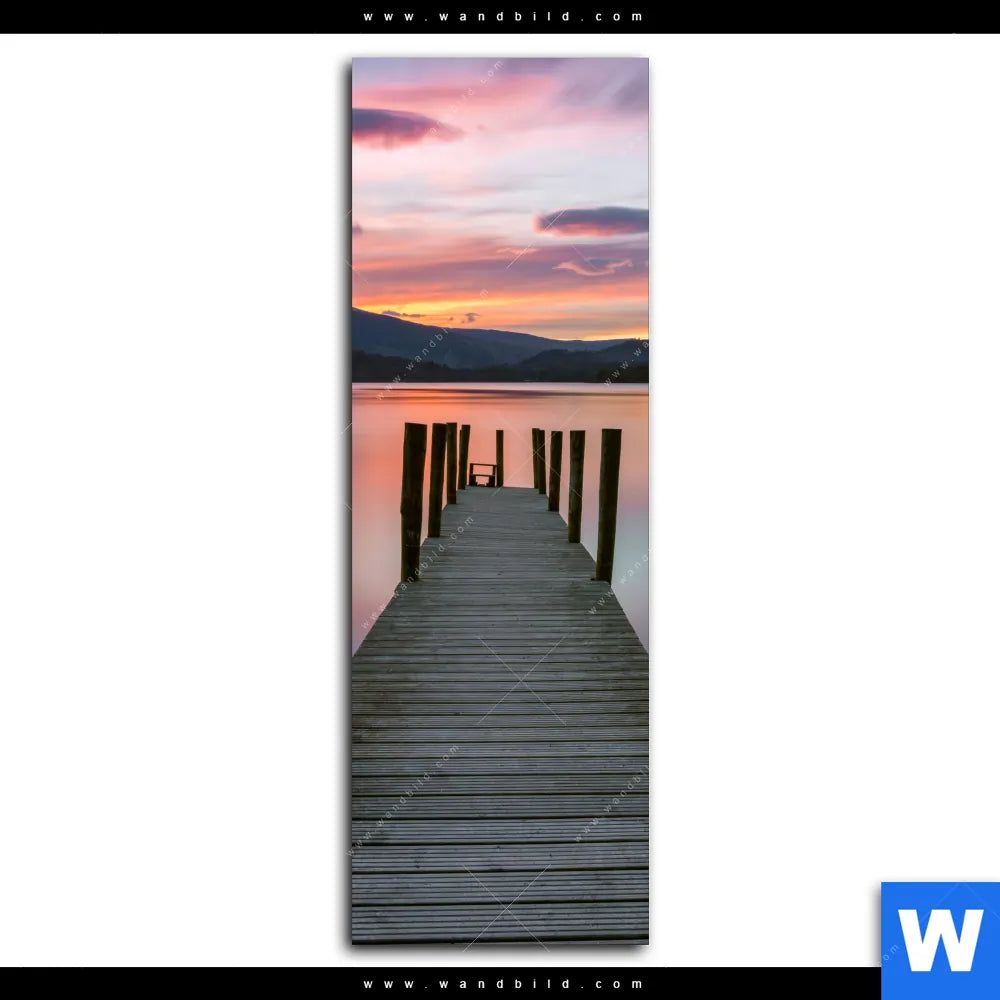 Aluminiumbild gebürstet | Steg in den Sonnenuntergang | Schmal