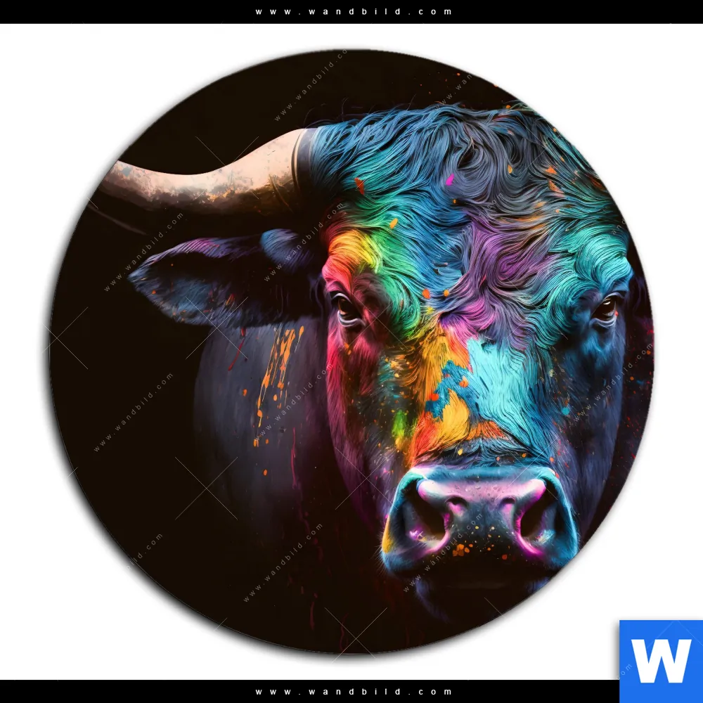 Aluminiumbild gebürstet | Stier mit bunten Farben | Rund