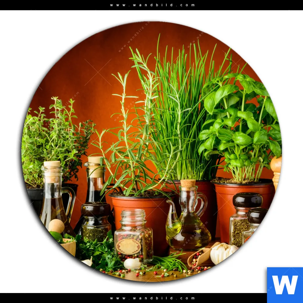 Aluminiumbild gebürstet | Stillleben mit mediterranen Kräutern | Rund