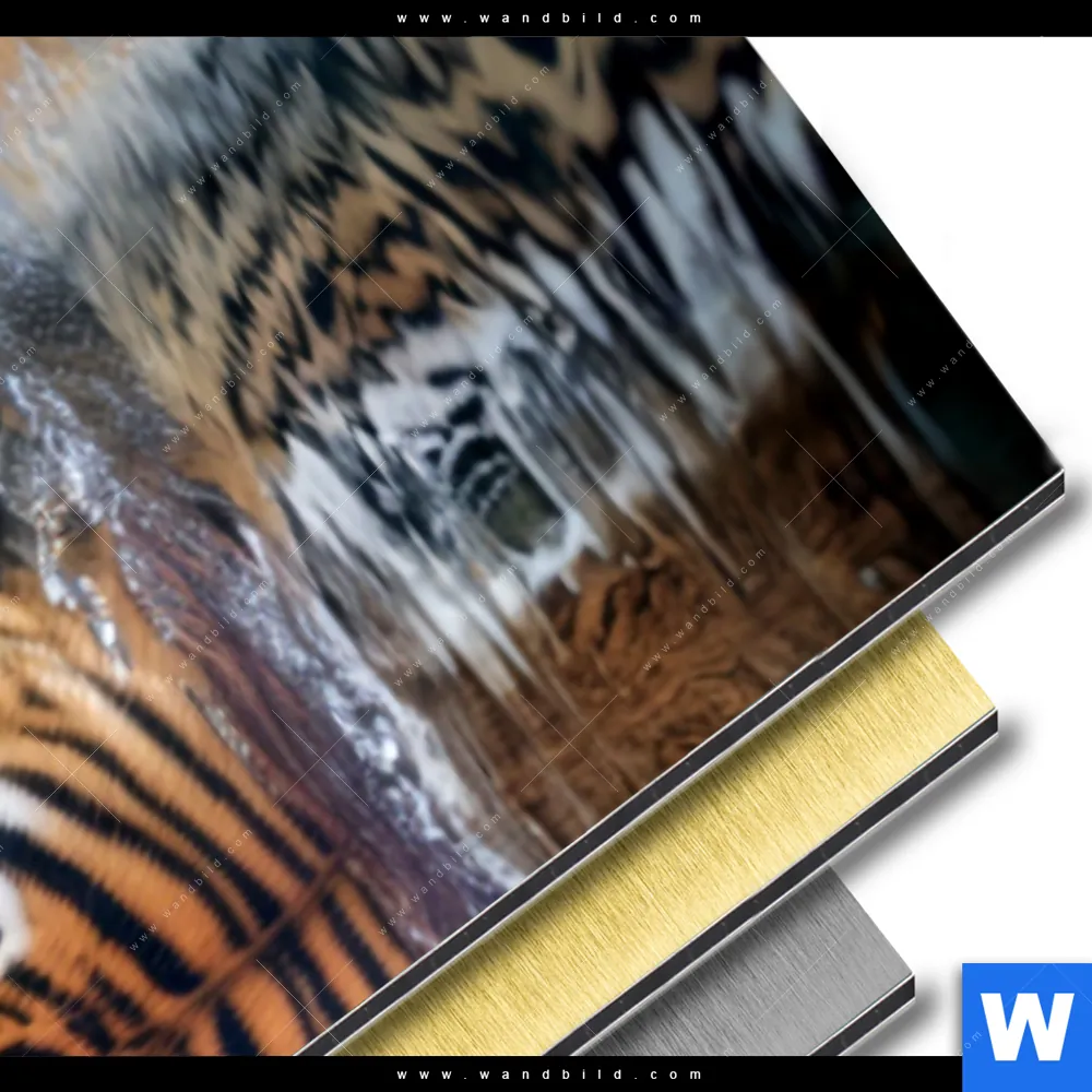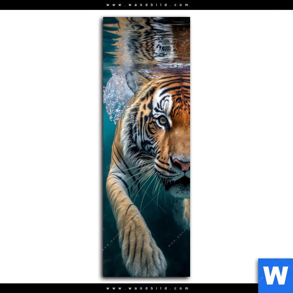 Aluminiumbild gebürstet | Tauchender Tiger | Schmal