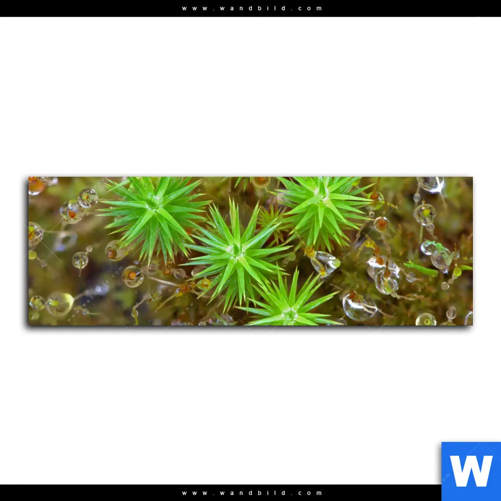 Aluminiumbild gebürstet | Tautropfen auf Moos | Panorama