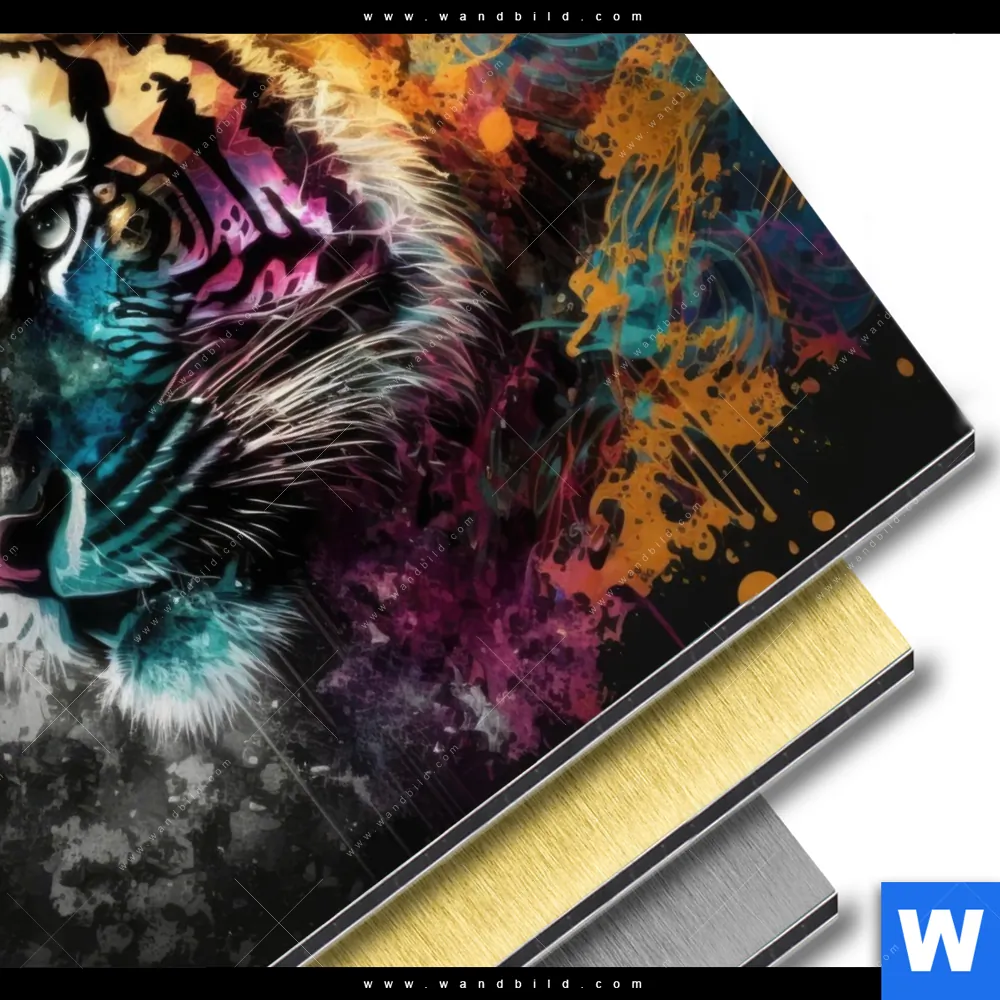 Aluminiumbild gebürstet | Tiger im Farbrausch | Quadrat
