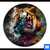 Aluminiumbild gebürstet | Tiger im Farbrausch | Rund