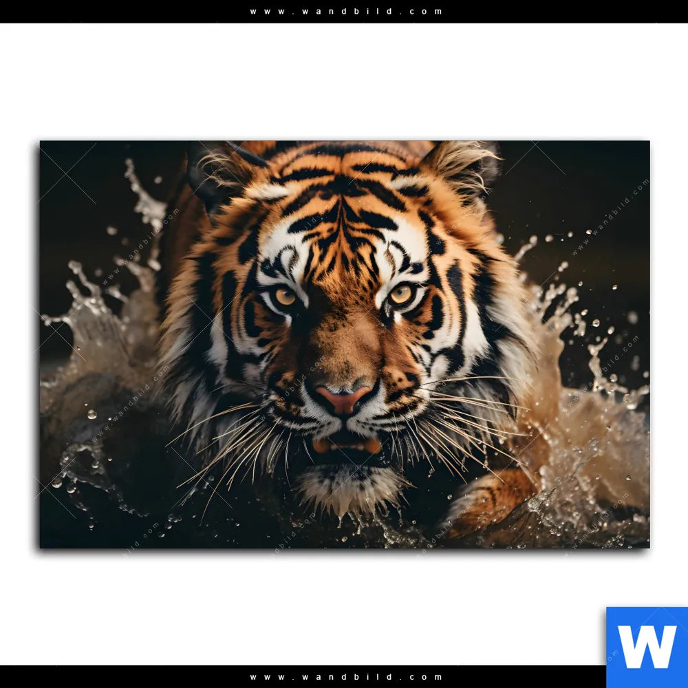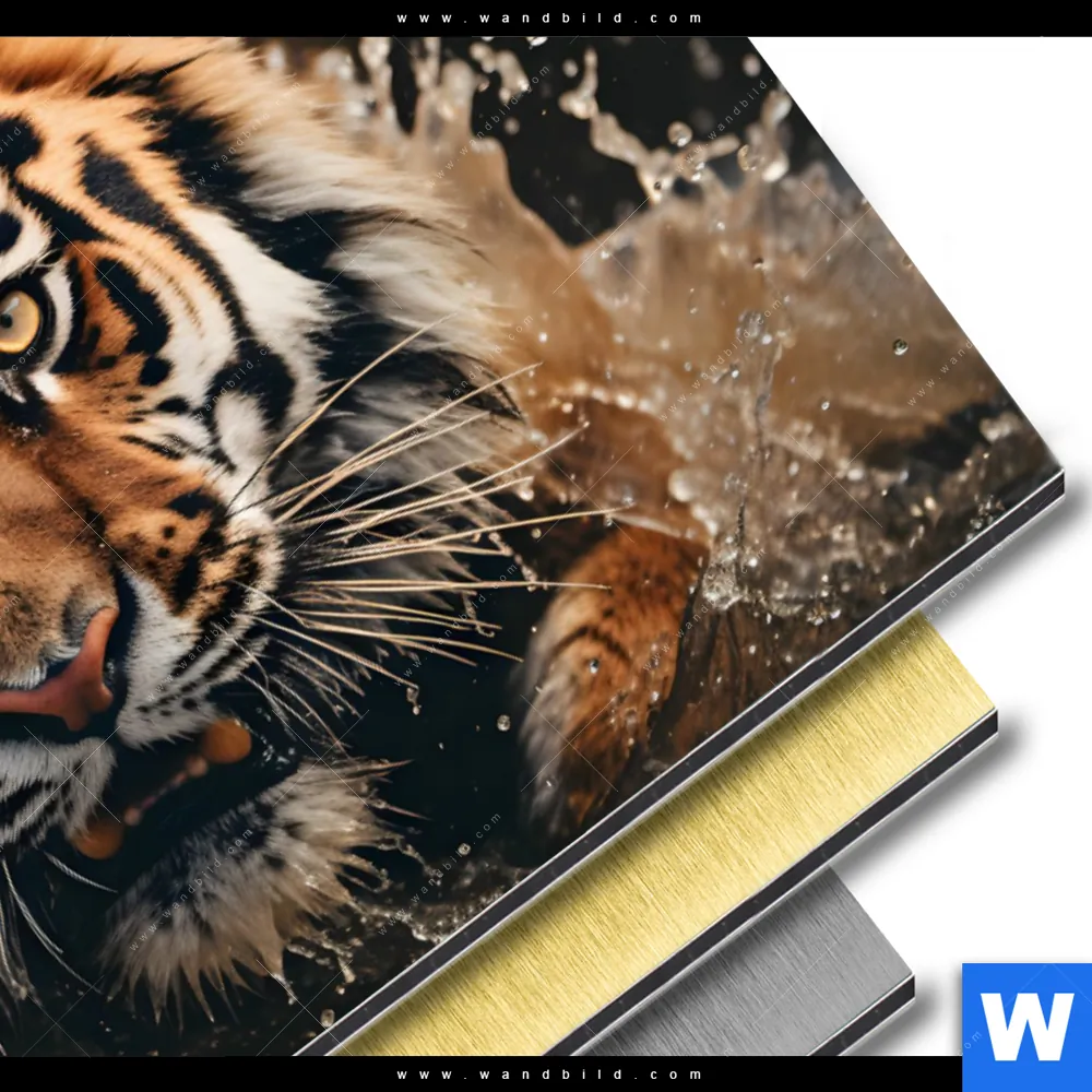 Aluminiumbild gebürstet | Tiger im Wasser | Querformat
