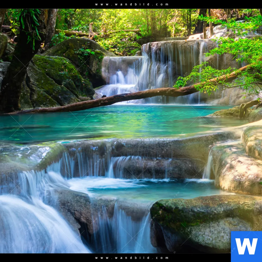 Aluminiumbild gebürstet | Tropischer Wasserfall | Quadrat