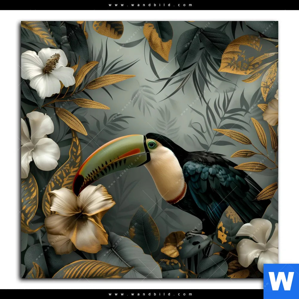 Aluminiumbild gebürstet | Tukan im goldenen Regenwald | Quadrat
