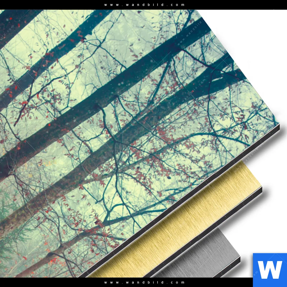 Landschaften, Wald - Bäume Aluminiumbild mit metallischem Effekt inkl. vormontiertem Rückrahmen
