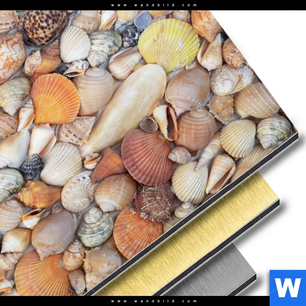 Aluminiumbild gebürstet | Viele Muscheln | Querformat