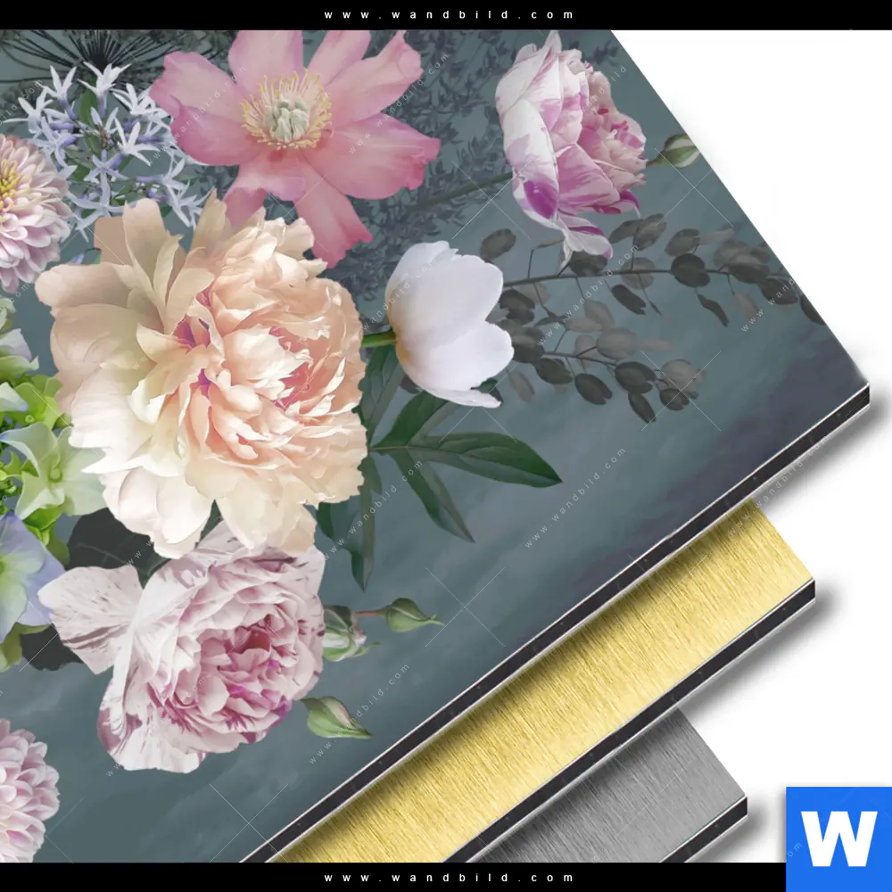 Blumen - Botanik Aluminiumbild mit metallischem Effekt inkl. vormontiertem Rückrahmen
