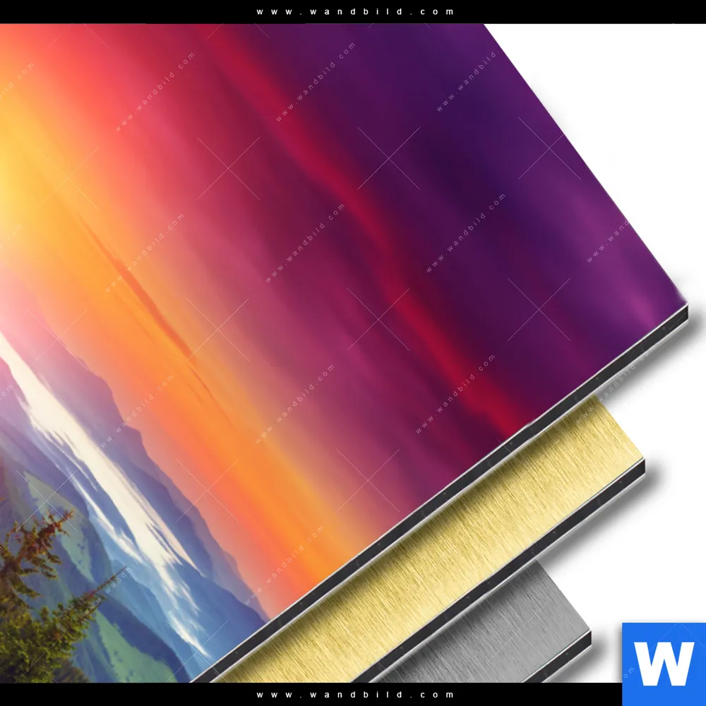 Bitte beachte: Die auf deinem Computer oder Handy abgebildeten Farben der Motive können von den Originalfarben des gedruckten Aluminiumbild gebürstet abweichen. Die Farben werden auf dem Computerbildschirm anders dargestellt, als auf einem gedruckten Aluminiumbild gebürstet. Computer und Handys verwenden das RGB-Farbsystem, während der Druckprozess das CMYK-Farbsystem nutzt. Ebenso spielt die Kalibrierung des Monitors eine entscheidende Rolle.