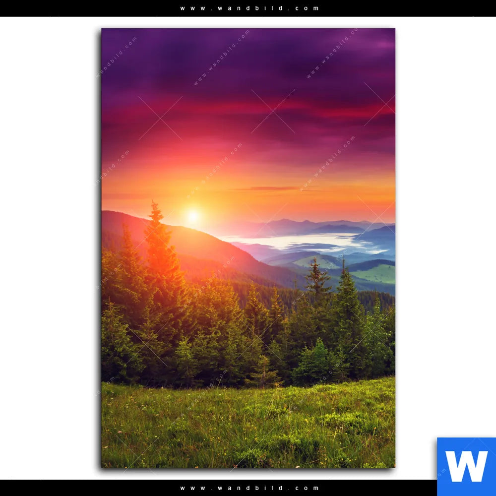 Aluminiumbild gebürstet | Wald bei Sonnenuntergang | Hochformat