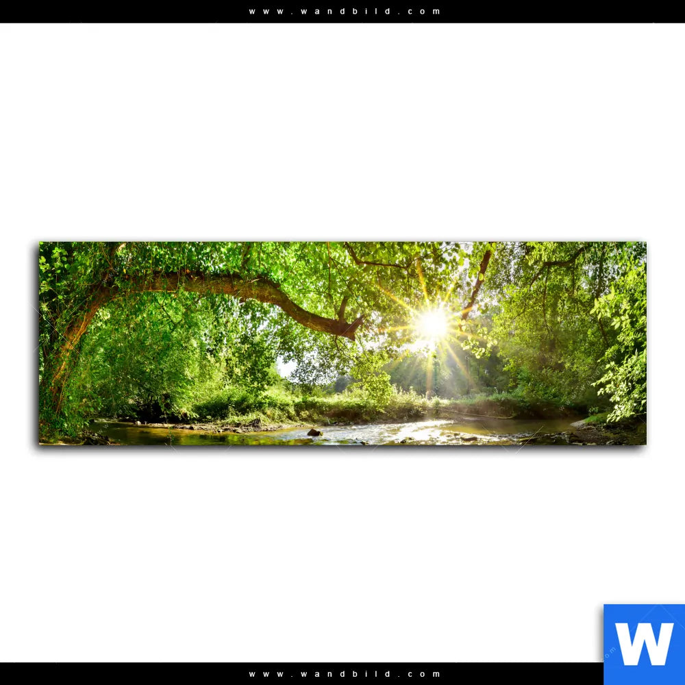 Aluminiumbild gebürstet | Wald mit Bach bei Sonnenschein | Panorama
