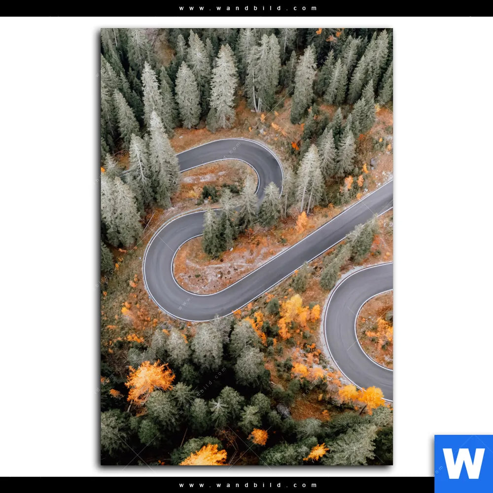 Aluminiumbild gebürstet | Wald & Straße von oben | Hochformat
