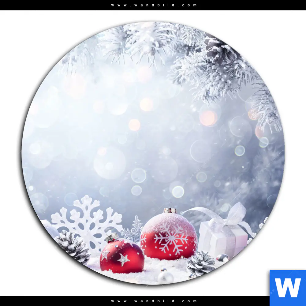 Aluminiumbild gebürstet | Weihnachtskugeln im Winterwunderland | Rund