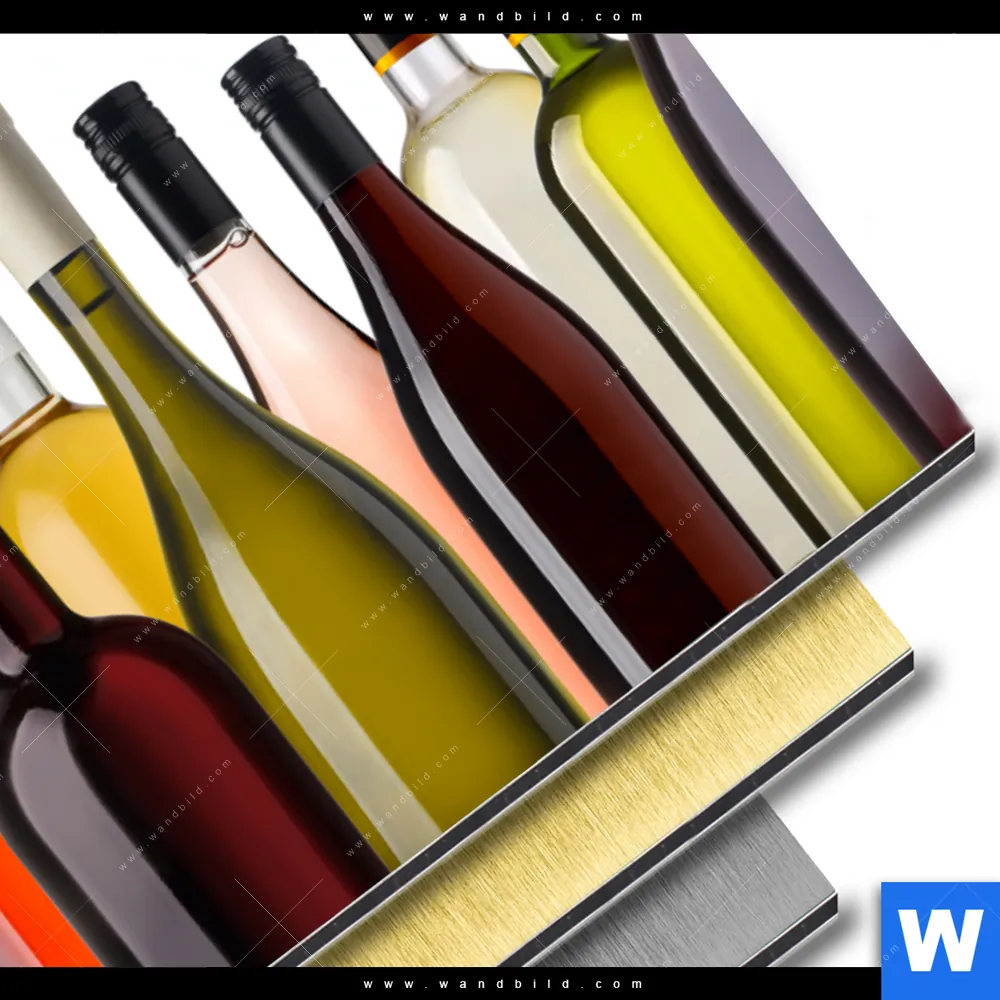 Aluminiumbild gebürstet | Weinflaschen | Querformat