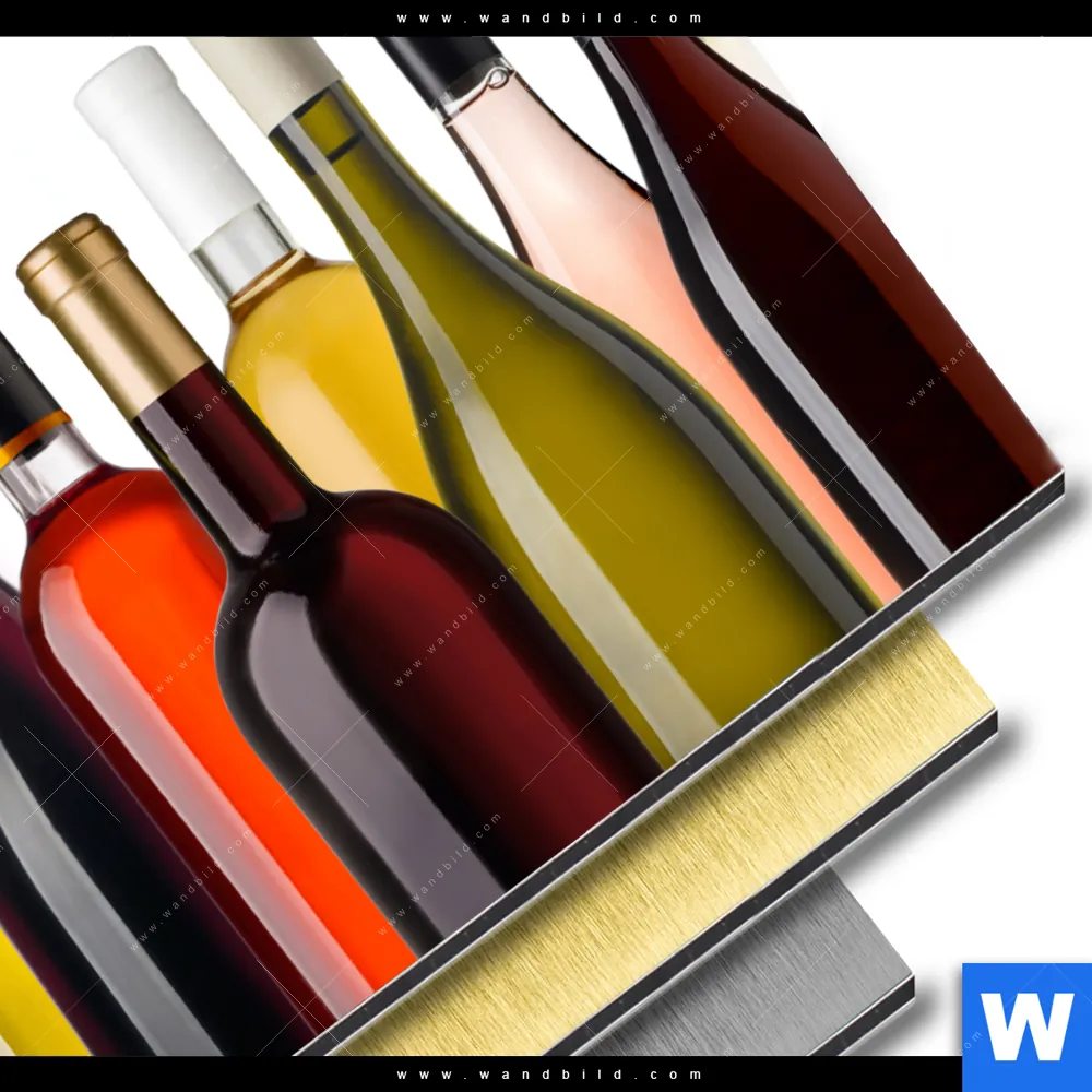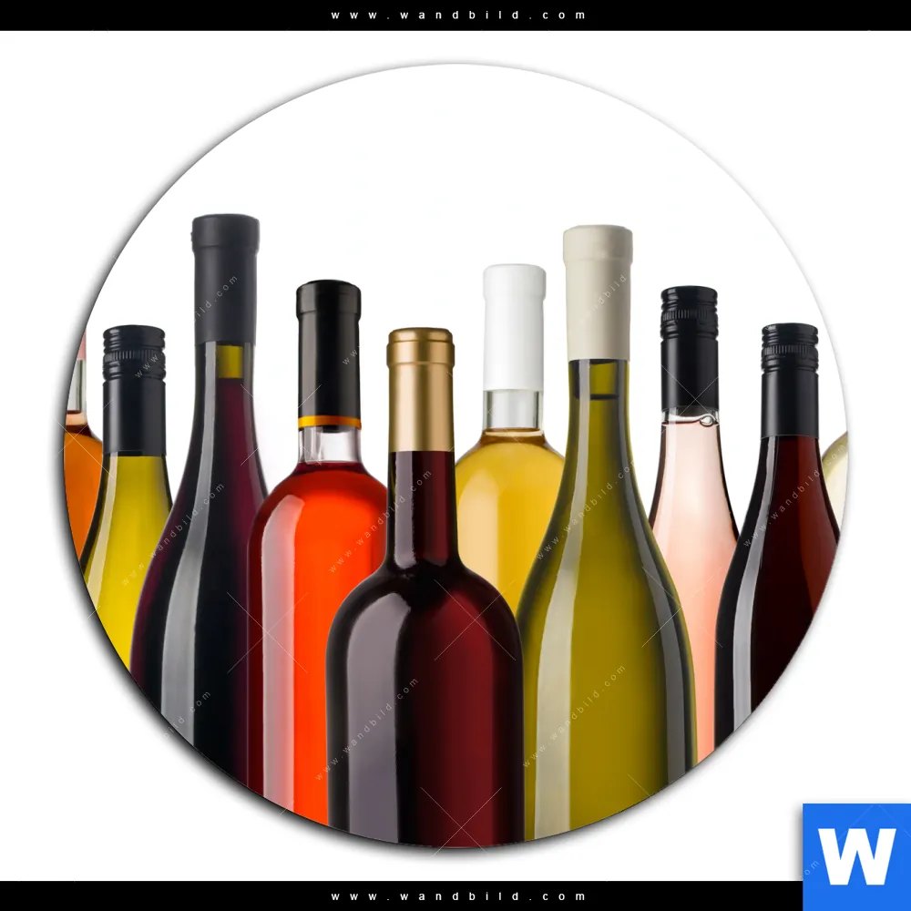 Aluminiumbild gebürstet | Weinflaschen | Rund