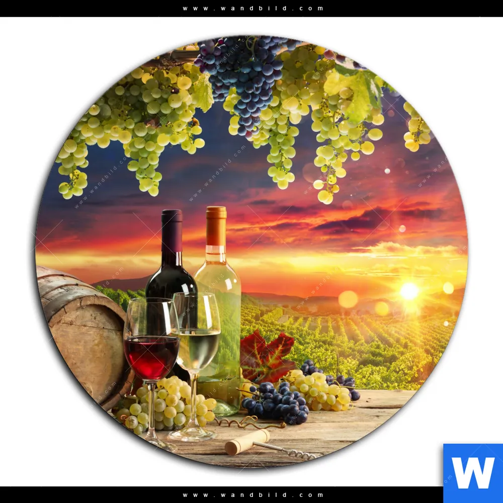 Aluminiumbild gebürstet | Weinreben im Abendlicht | Rund