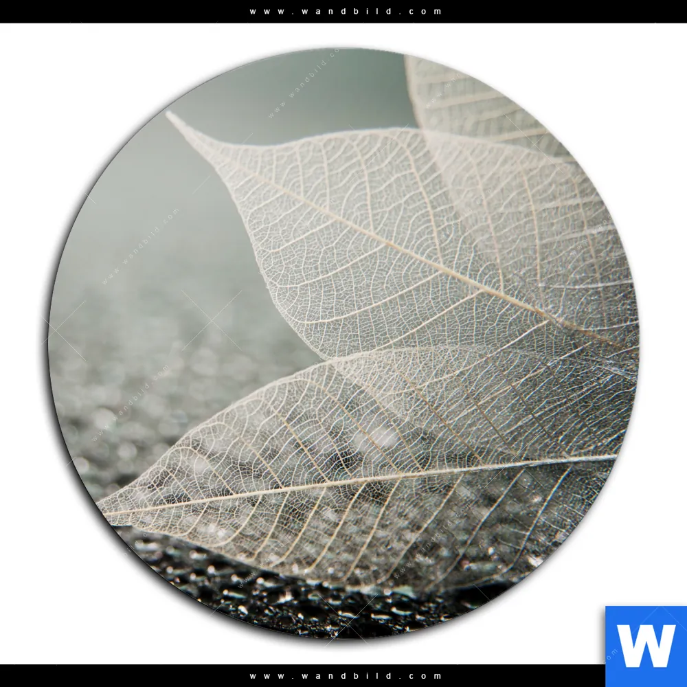 Aluminiumbild gebürstet | Weiße Blätter | Rund