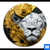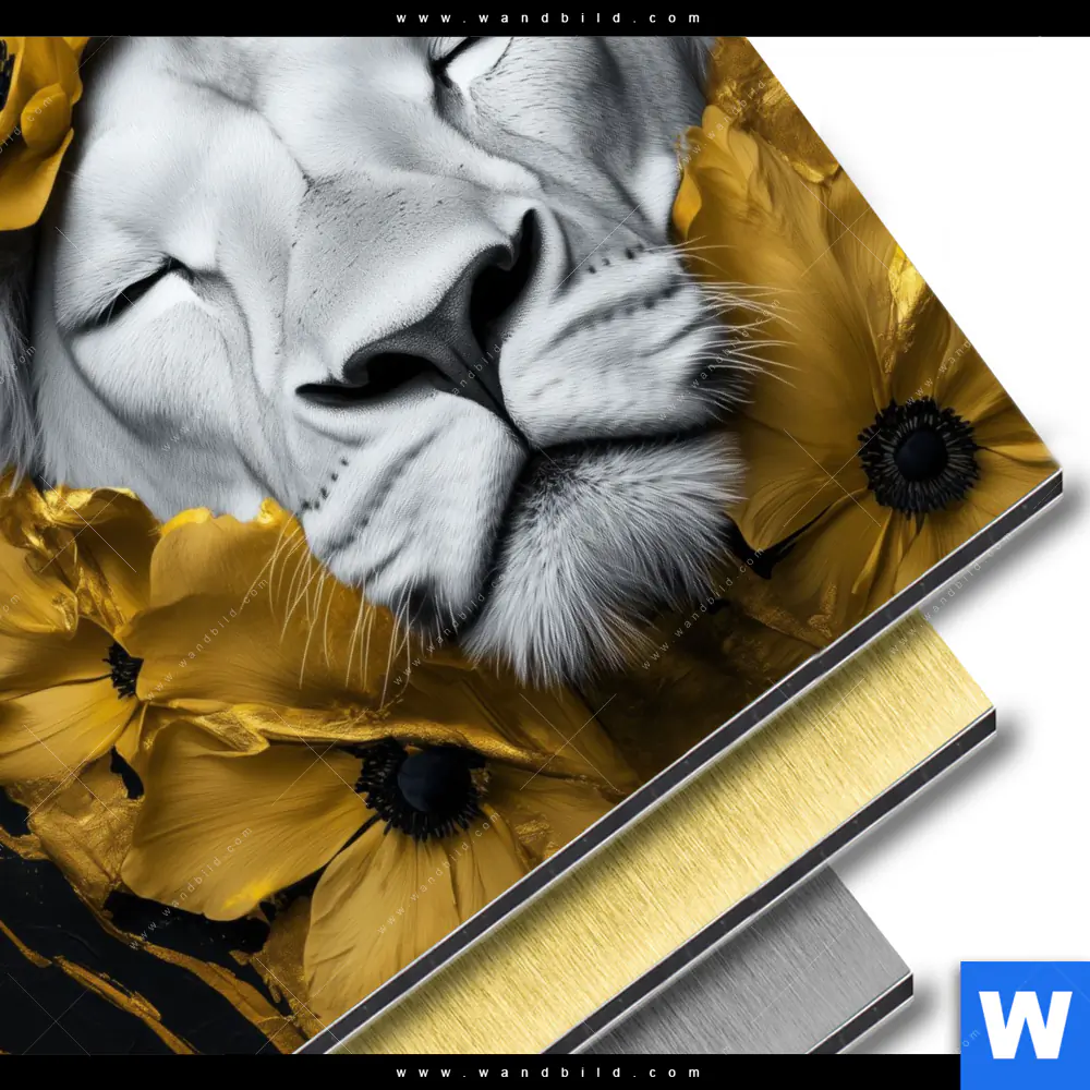 Aluminiumbild gebürstet | Weiße Löwin mit Goldblüten | Rund