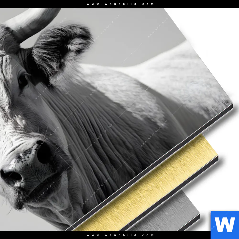 Aluminiumbild gebürstet | Weisser Bulle | Querformat