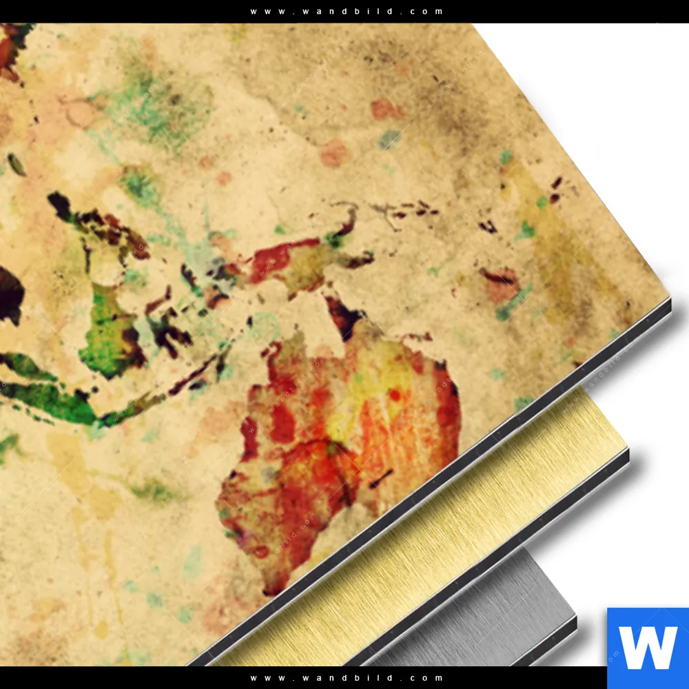 Aluminiumbild gebürstet | Weltkarte Retro Bunt | Panorama