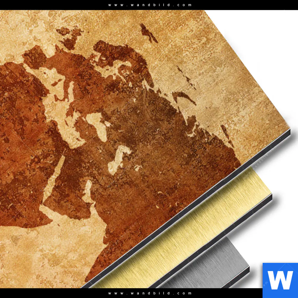 Aluminiumbild gebürstet | Weltkarte Rostoptik | Hochformat