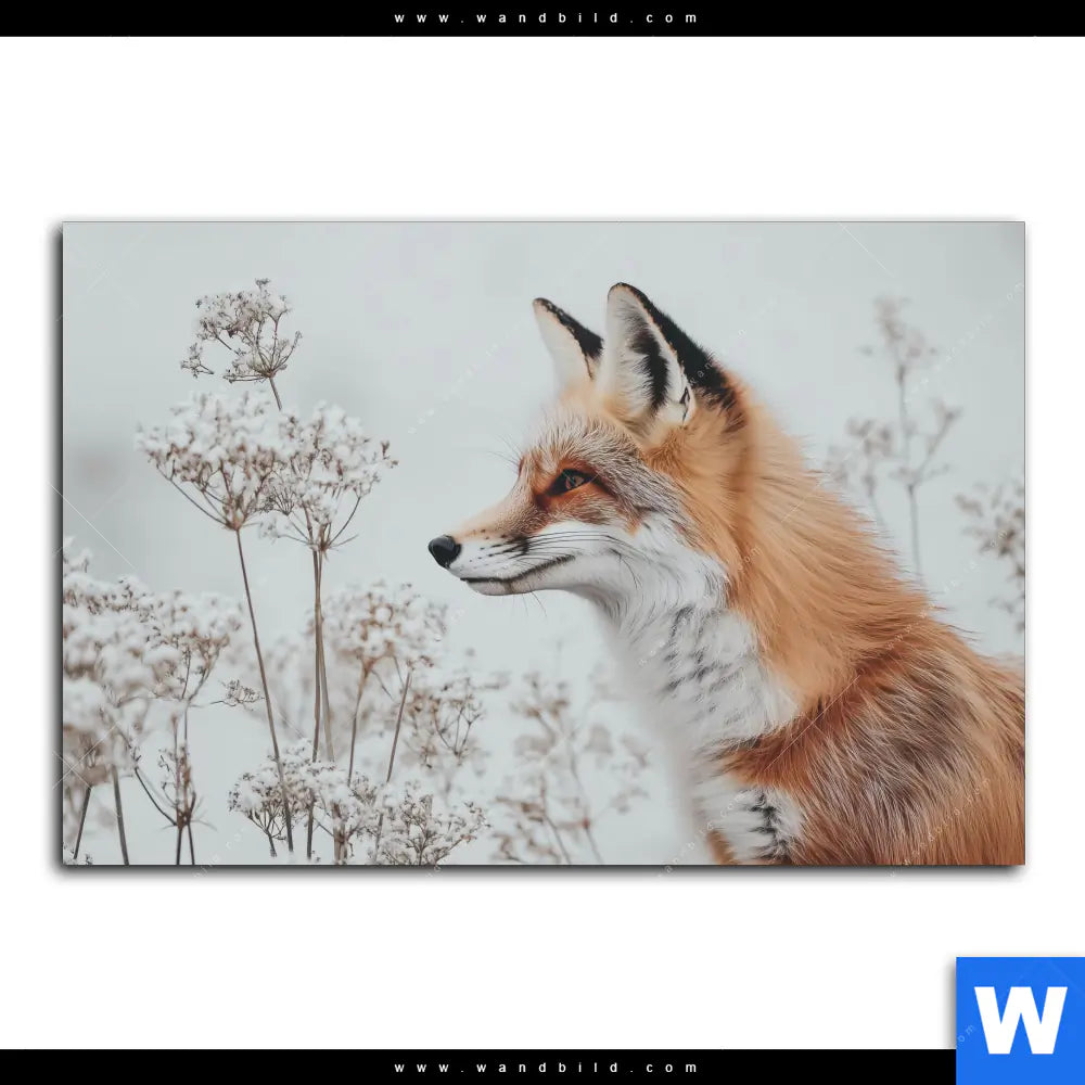 Aluminiumbild gebürstet | Winterstille - Der Fuchs | Querformat